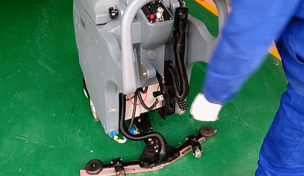 3.踩下刷盤(pán)腳踏,往左挪動(dòng)掛好,提升刷盤(pán)